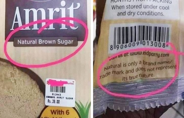 Természetes barna cukor.. A kisbetűs rész ugyanakkor megjegyzi, hogy a „természetes” csak egy márkanév..