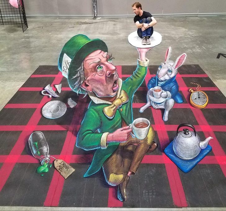 Alice Csodaországban inspirálta 3D krétarajt. Kb. 6 méter x 6 méteres!