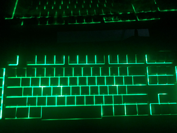 Megvilágított billentyűzet, amin nem látni a jelöléseket..