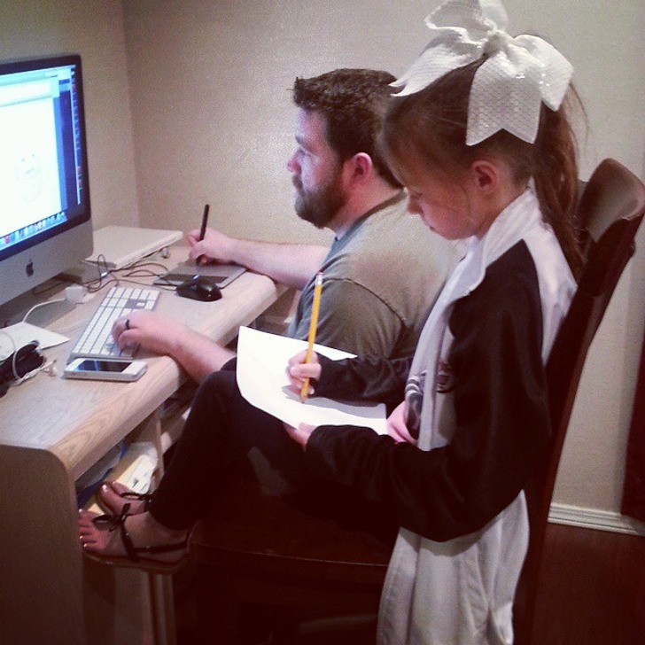A kislány áll, a férfinak meg apró lábai vannak. Legalábbis így néz ki..