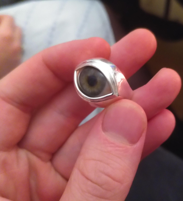 Gyűrű, amit egy igazi üvegszem „díszít”.