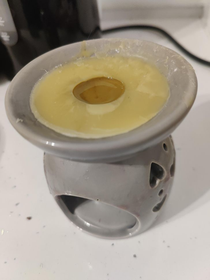 Ananász illatú gyertya, ami ananász szeletre emlékeztető formára olvadt..