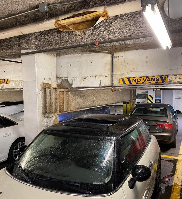 Nyitva hagytam a tetőt, hiszen fedett parkolóba álltam be.. pont a kocsim felett lett csőtörés..