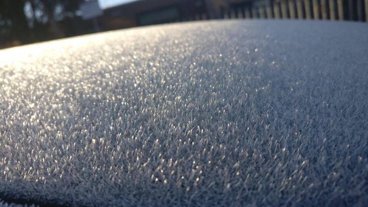 Reggeli fagy egy kocsitetőn.