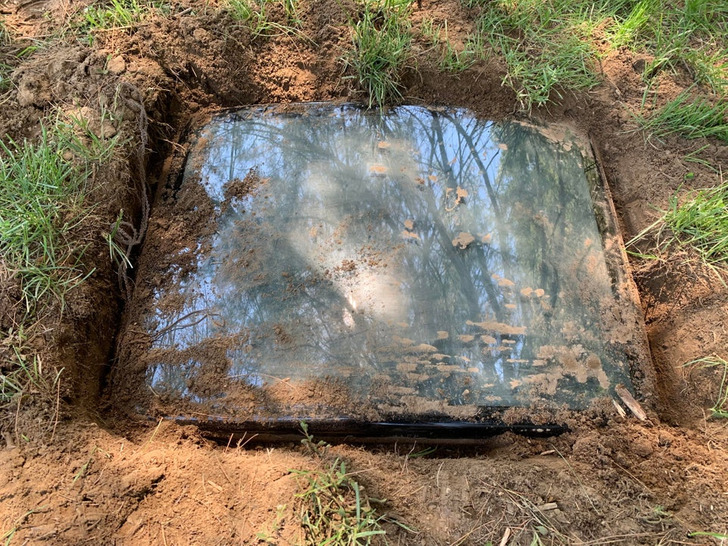 Az előző lakók valamiért elástak egy tévét a kertben.