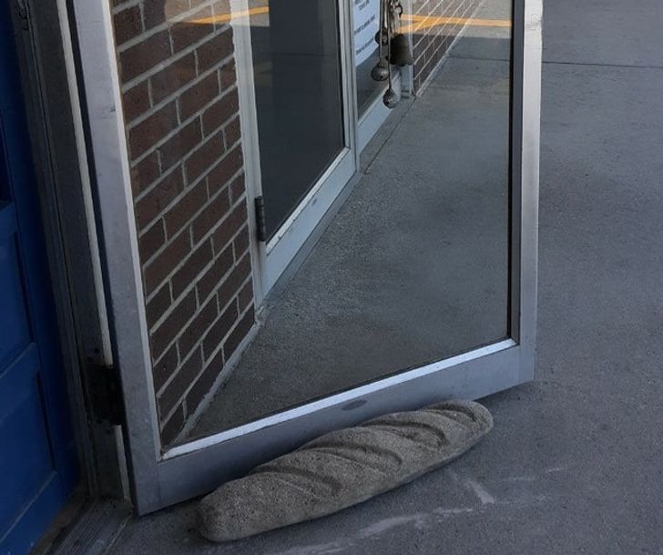 Ennek a pékségnek az ajtófogója egy beton kenyér!