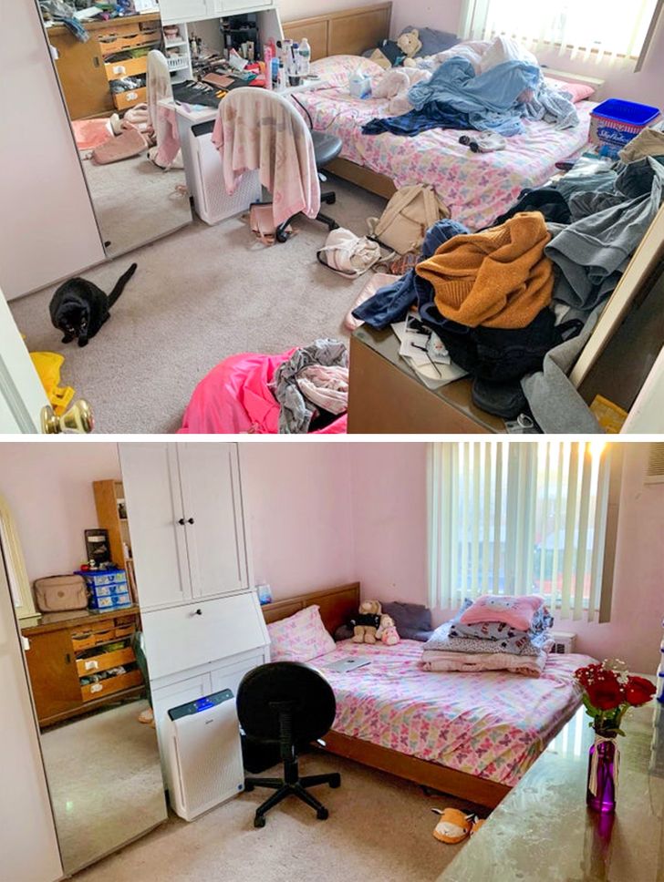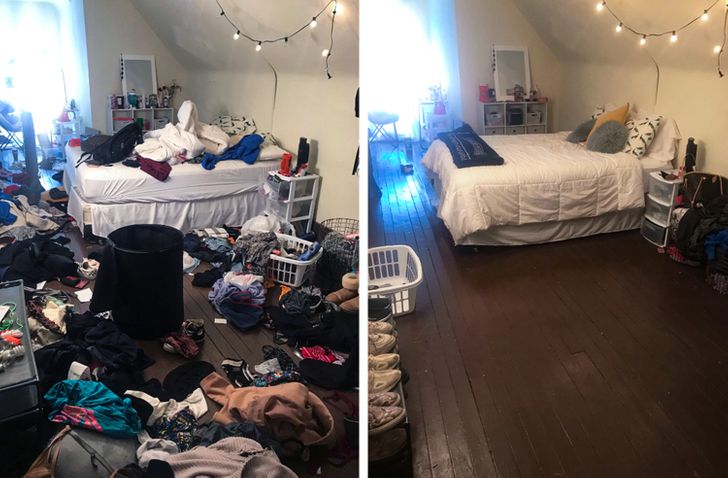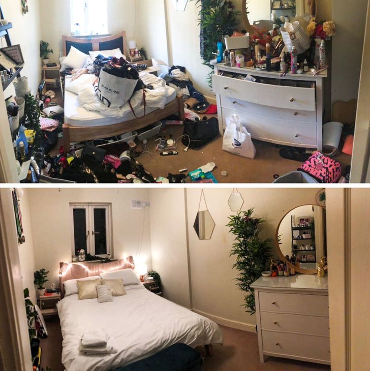 Hisszük, hogy egy tiszta és rendezett otthon levehet némi stresszt a vállunkról. Íme néhány előtte-utána kép, ami motiválhat, hogy végre kitakarítsd azt a ruhákkal teli széket.