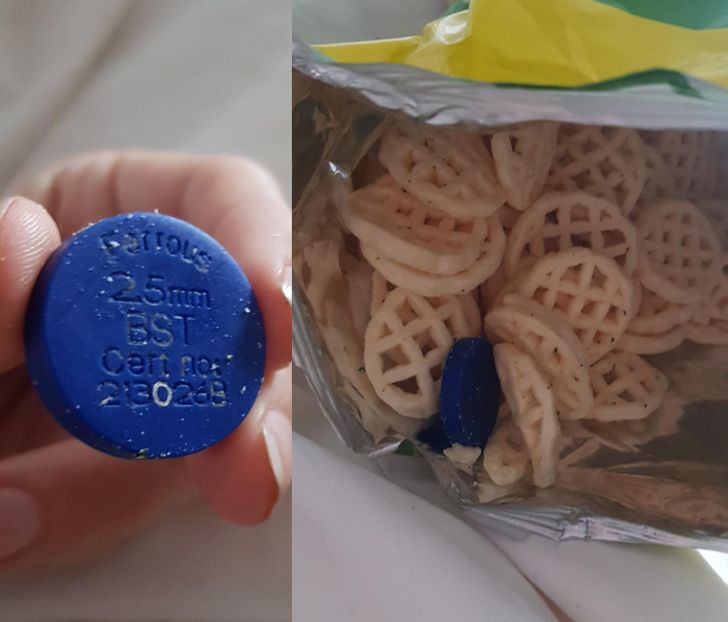 Ez egy tesztelési chip. Átmegy a fémdetektorokon, hogy megbizonyosodjon arról, hogy működnek. De van itt egy kis probléma. Az egész teszt célja az, hogy megbizonyosodjon arról, hogy az ilyen dolgok – amelyek idegen tárgyat szimulálnak – nem jussanak át.