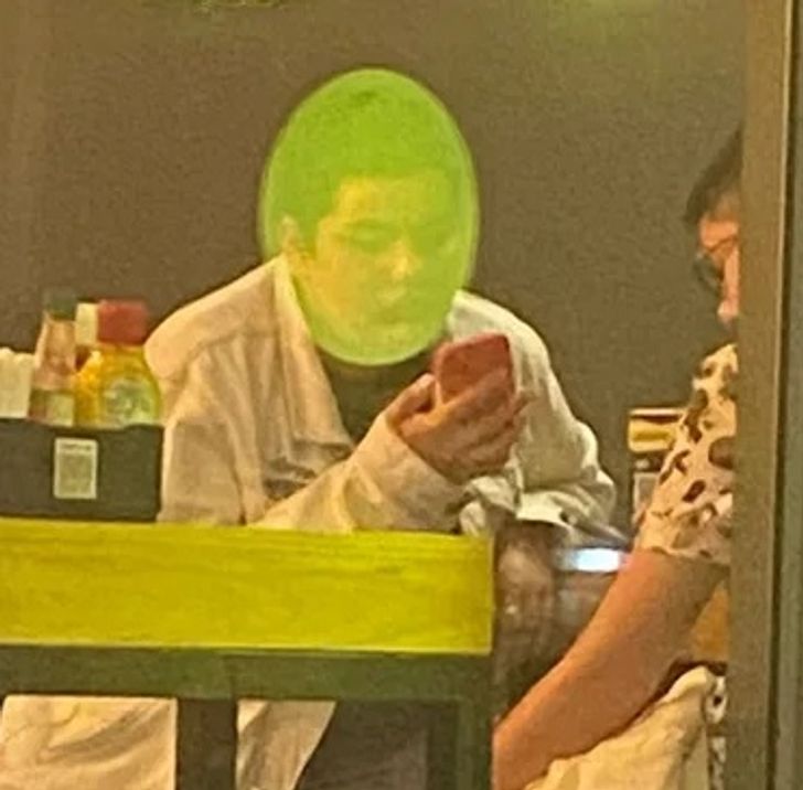 A tükröződés miatt olyan, mintha egy UFO sisakot viselne..