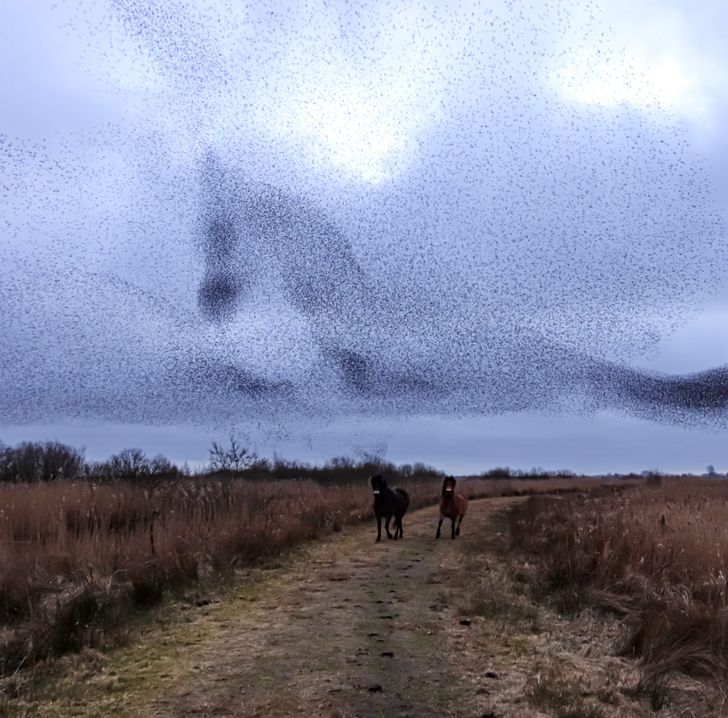 Lóra emlékeztető madárraj, miközben két ló itt vágtázik!
