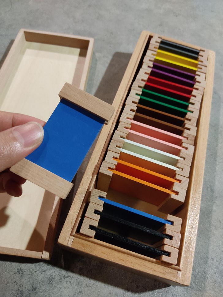 Igazából ezek egy Montessori doboz részei, amelyek segítségével a gyerekeknek tanítják a színeket, valamint meg lehet velük jelölni egyes dolgokat, hogy a rendrakást is megtanulják.