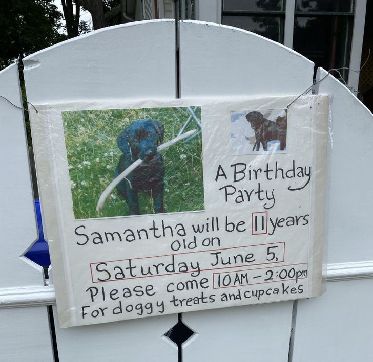 Egy idős hölgy rakta ki. Samantha (a kutyája) 11 éves lesz, és bulira hívnak!